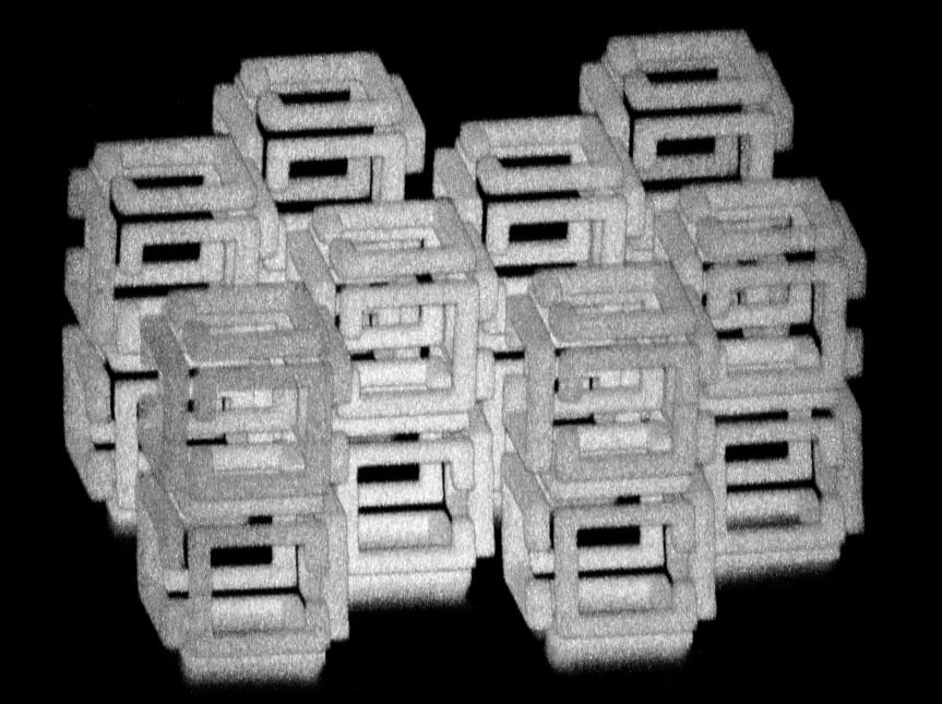 這張照片就是MIT研究團隊利用「內爆製造」做出的 3D奈米結構,再複雜的結構對於「內爆製造」來說,都能輕鬆縮小成一千倍。