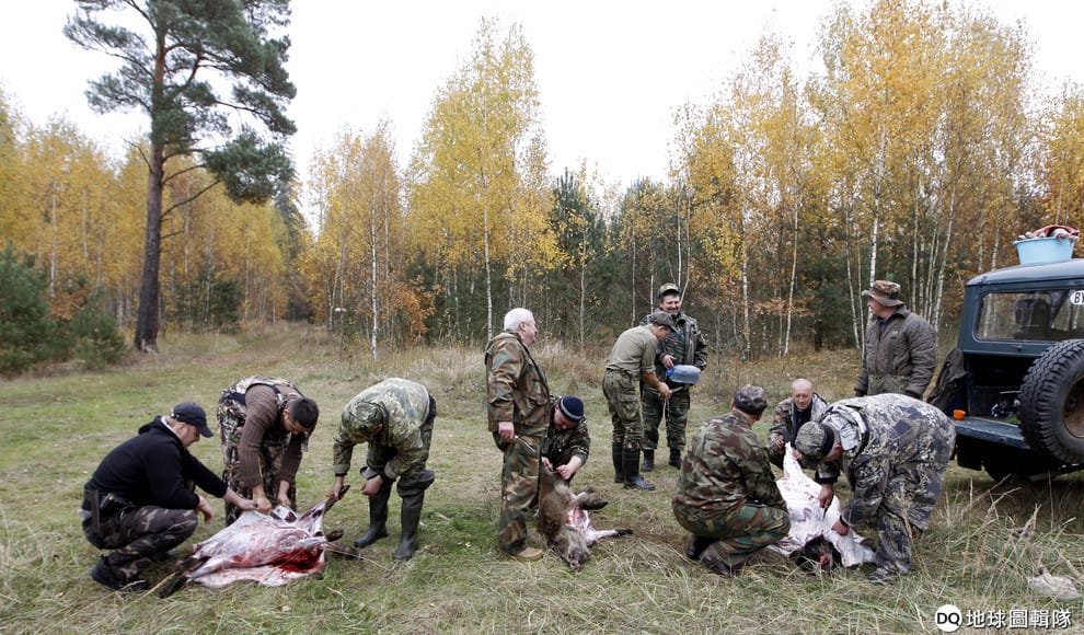 繼續閱讀2013年10月在白羅斯,獵人們正在處理剛剛捕到的野豬。在白羅斯爆發非洲豬瘟疫情後,野豬獵人的執照申請費就大幅下滑。