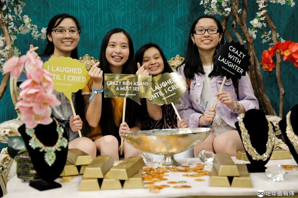 圖為今年 8月在美國加州洛杉磯的KCON USA音樂祭上,活動參加者們在電影《瘋狂亞洲富豪》準備的打卡景點比出手指愛心的手勢合影。