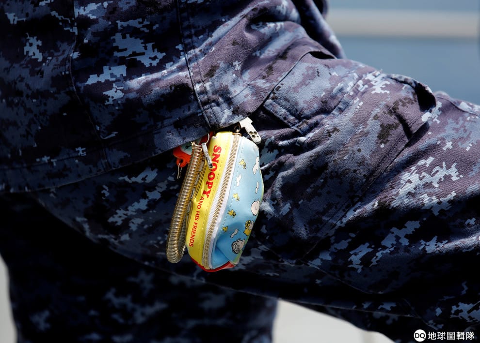 路透社 / 達志影像一名女性領航員在練習升降信號旗時,史努比卡通鑰匙袋從迷彩服下露了出來。