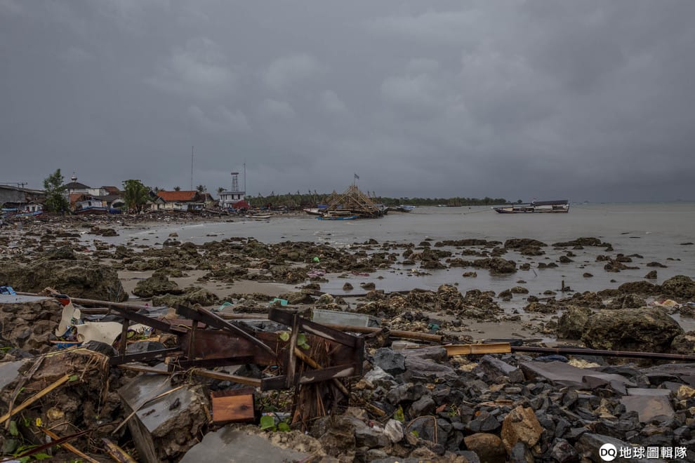 圖為 24號,在印尼爪哇島西部萬丹省(Banten province)的板底蘭(Pandeglang),板底蘭Carita海灘和蘇門答臘島隔著巽他海峽,是這一次受到海嘯重創的海岸之一。