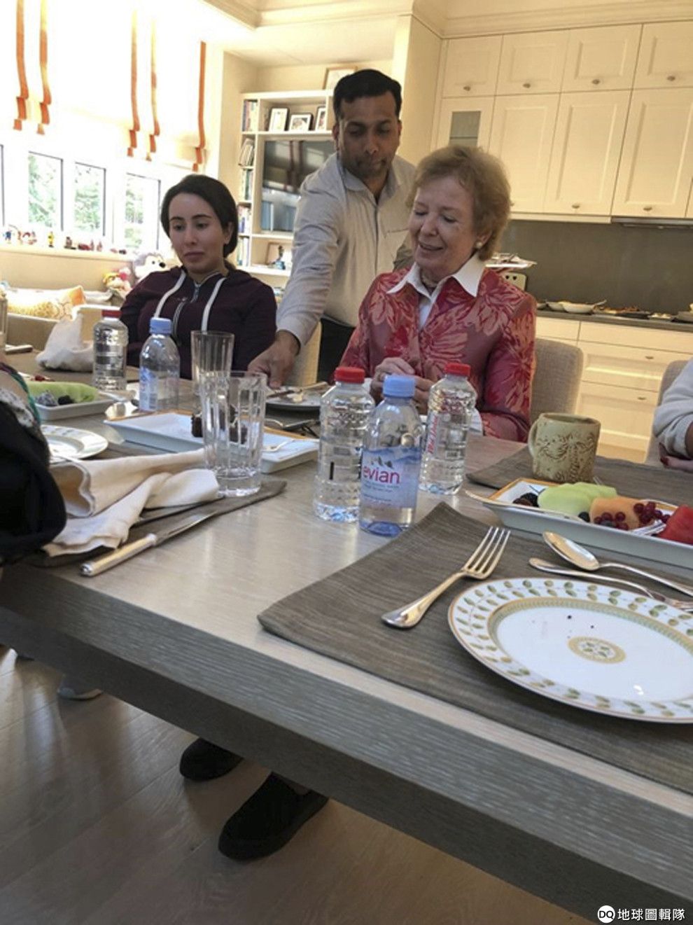 在阿拉伯聯合大公國釋出的照片中,杜拜拉蒂法公主和前聯合國人權事務高級專員羅賓遜一起用餐。