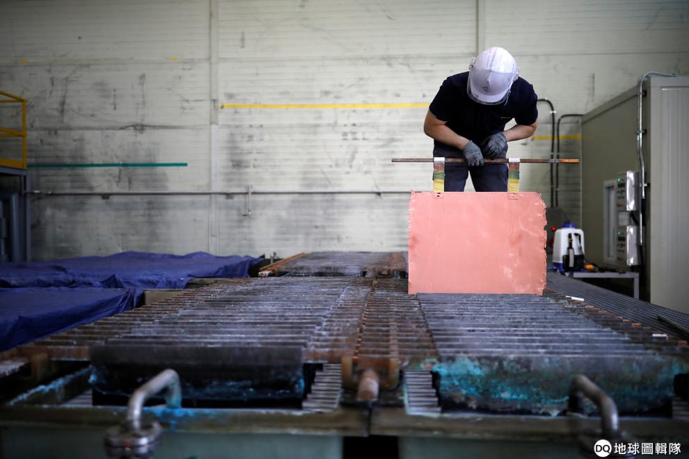 路透社 / 達志影像在南韓群山市的「都市礦山」裡,一名工人拿著一塊剛製成的再生銅板。