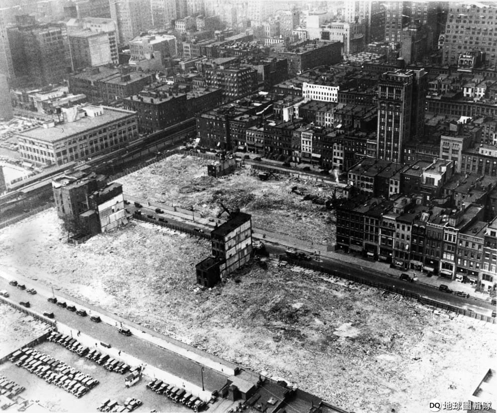 這張拍攝於 1931年7月的照片,記錄下為了打造洛克斐勒中心,而陸續被拆除的褐石建築。