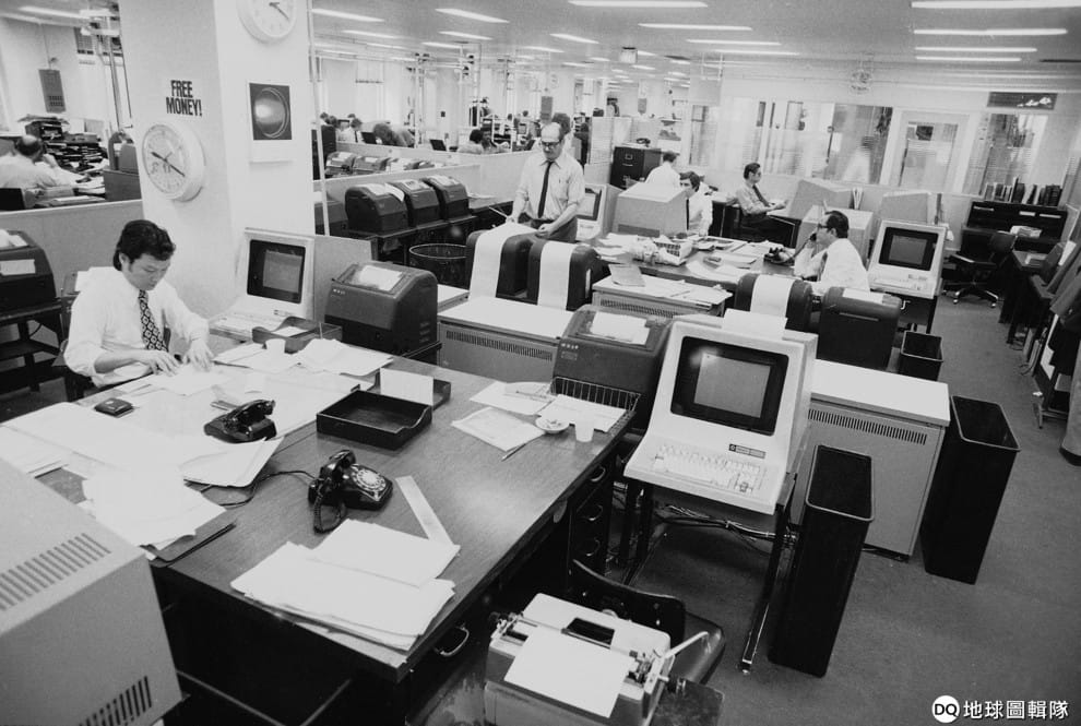美聯社 / 達志影像時間再快轉到 1973年,再加上電腦的出現,有沒有覺得這裡變成你比較熟悉的辦公室樣貌呢?