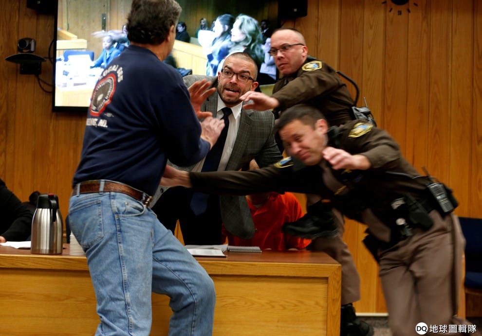 當時美國國家體操隊(USA Gymnastics)前隊醫納薩爾(Larry Nassar,身穿橘衣者,註1)坐在他的律師旁,而有 48名年輕女性一個接著一個走上聽證庭,訴說自己遭到納沙性騷擾、性虐、性侵的經歷。