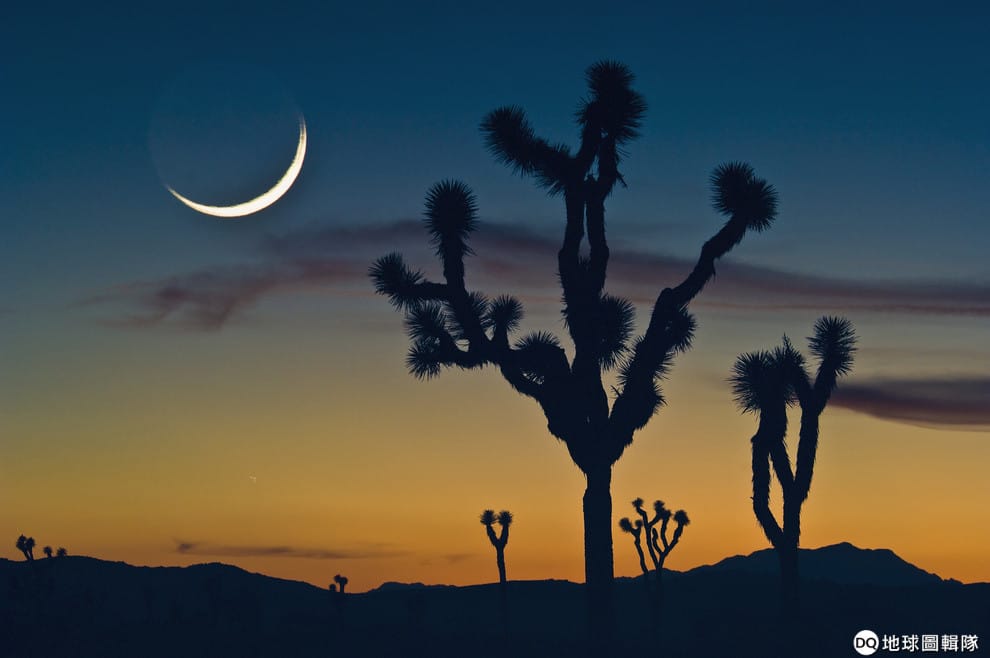圖為 2012年10月,在約書亞樹國家公園,月亮高掛在天上。