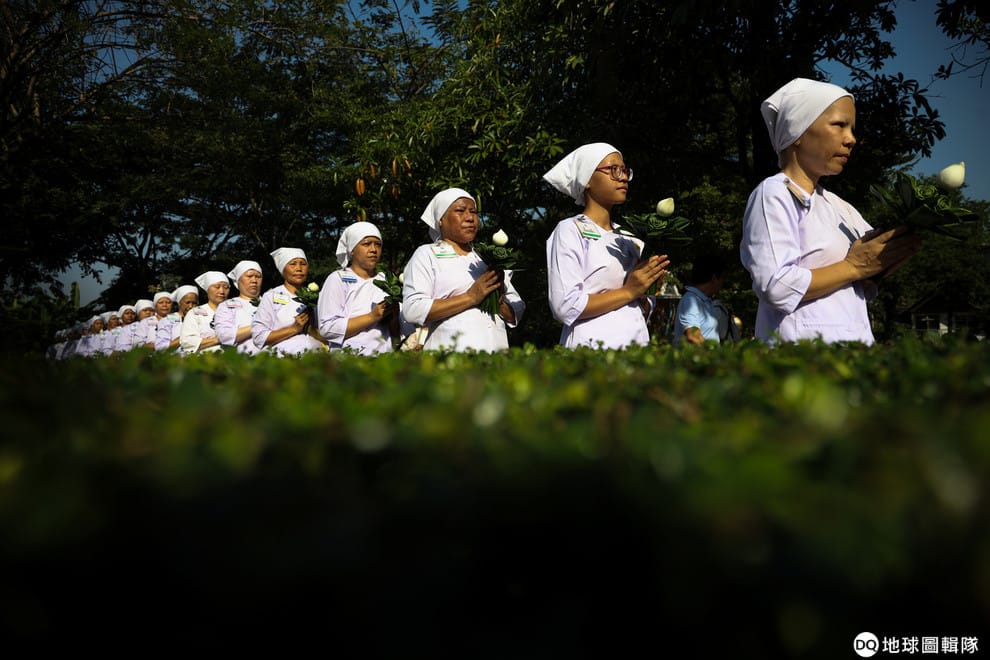 編註:《路透社》原文稱泰國白袍出家女眾為「Buddhist nun」,但泰國這些身穿白袍或粉紅色服飾的出家女眾,在當地稱為「Maechi」或「Mae chee」,故在此使用台灣常用的中文譯名「美姞」。