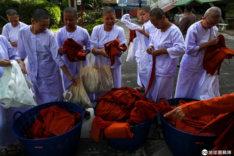 所以在泰國,虔誠的女教徒如果想要出家修行,她們唯一的選擇就是換上白袍成為「美姞」(Buddhist nun,編註)。但是美姞在寺廟裡往往負責家務,在規範上也不同於真正的僧侶或沙彌。