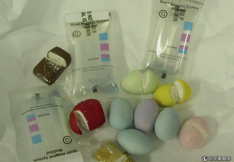 照片中是偽裝成五彩糖果的古柯鹼。