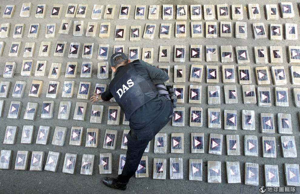 哥倫比亞警察確認搜查到的古柯鹼。