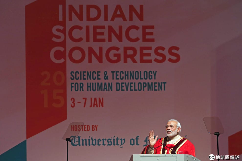 圖為 2015年1月在印度孟買,印度總理莫迪在第 102屆印度科學大會上致詞,莫迪今年也有出席替第 106屆印度科學大會開幕。