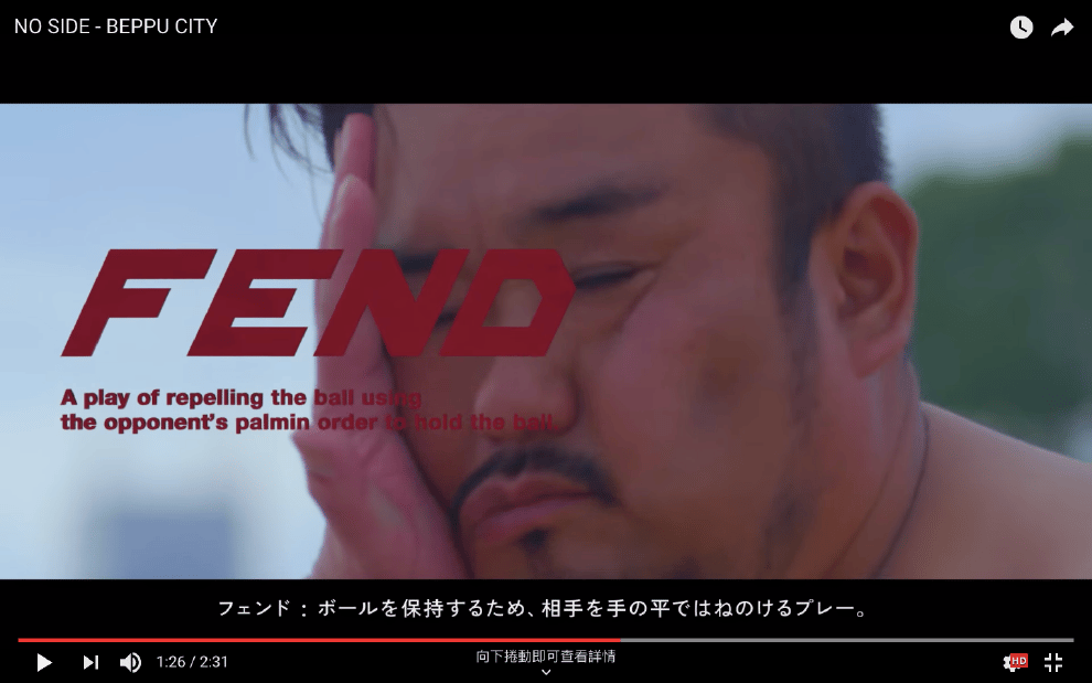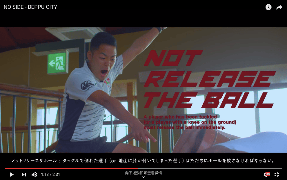 這支影片就是大分縣別府市最新推出的「NO SIDE - BEPPU CITY」廣告。這支廣告預定對外公開到 2019年世界盃橄欖球賽結束。