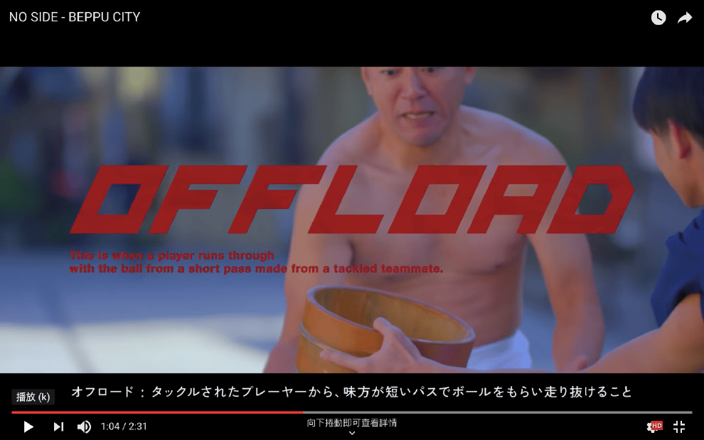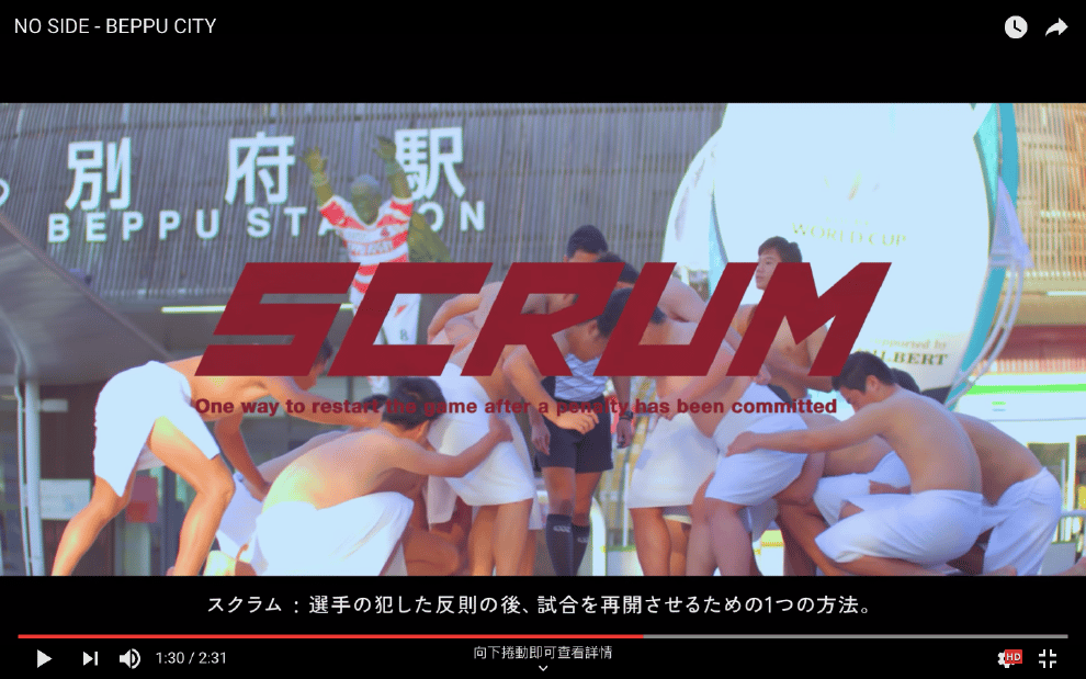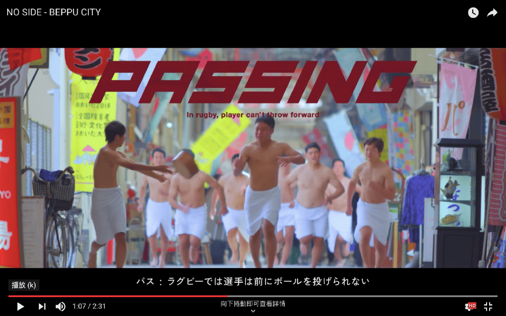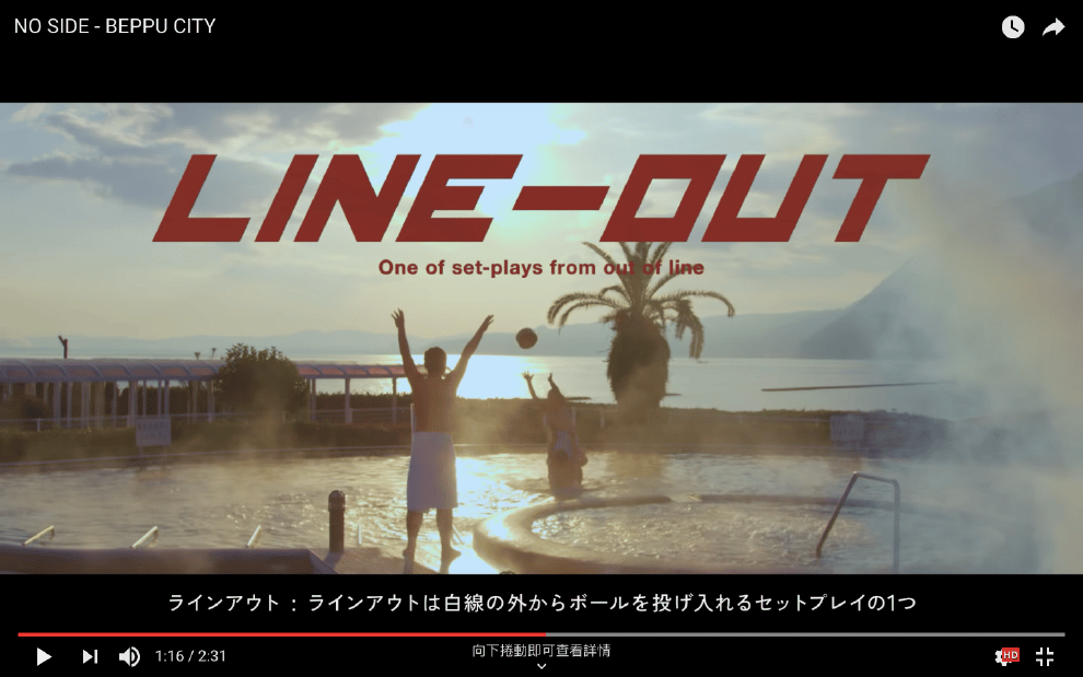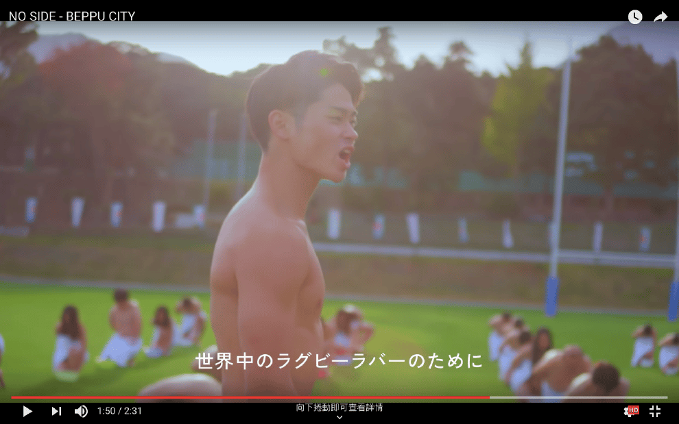 於是在本月 9號,別府市這支結合溫泉鄉特色和橄欖球介紹的宣傳廣告「NO SIDE - BEPPU CITY」就出現了。