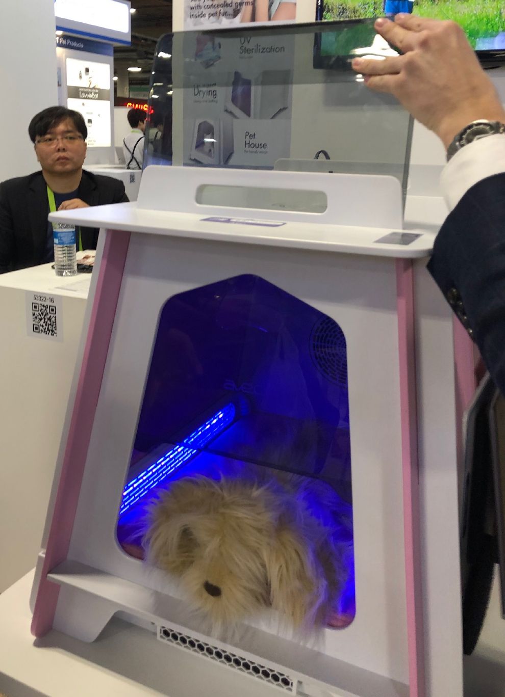 ▲ 南韓廠商 Pepe 針對小型犬開發出的自動毛髮乾燥設備。