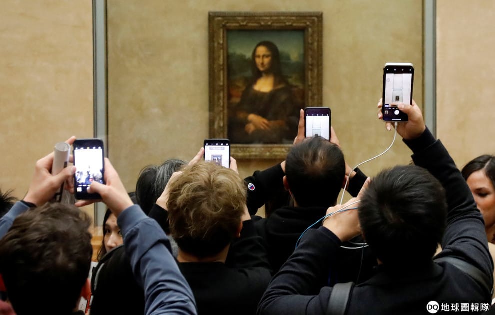 圖為 2018年12月,在法國巴黎羅浮宮(Louvre),民眾爭相拿出手機想拍下達文西的名作《蒙娜麗莎的微笑》。
