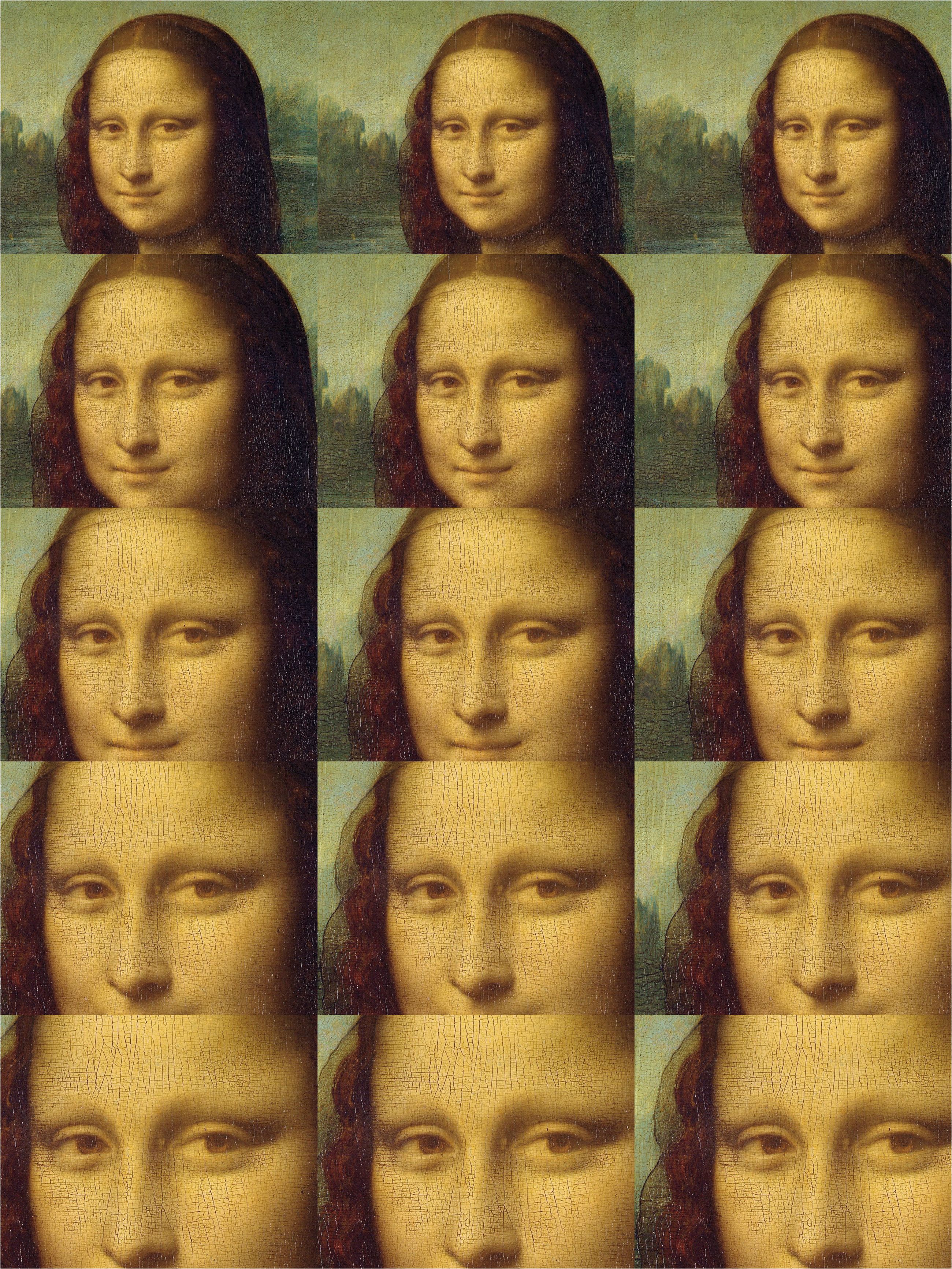 在霍斯曼和洛斯的實驗當中,受試者每次看到的「蒙娜麗莎」範圍都不一樣,但每個範圍都能看到蒙娜麗莎的眼睛和鼻子。