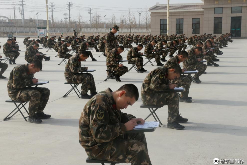 路透社 / 達志影像畫面另一端,新招募的中國人民解放軍成員正在接受思想政治理論測驗。