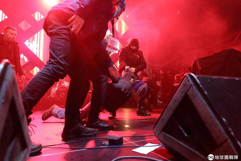 然而在活動中間,突然有一名男子衝上舞台,並朝出席活動的市長亞當維茲(Pawel Adamowicz)連續刺下好幾刀;隨後他一邊比畫著手上的刀子,一邊在舞台上指控亞當維茲過去所屬政黨公民論壇黨(Civic Platform party)在執政期間錯把他關入監獄,而且還在監獄裡虐待他,所以他才要殺掉亞當維茲。