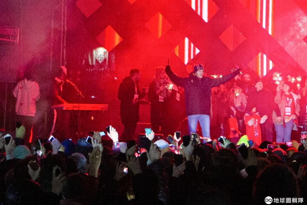 當時人們在舞台上等著煙火施放,兇嫌(最左邊戴帽者)就是在這時候闖入舞台。