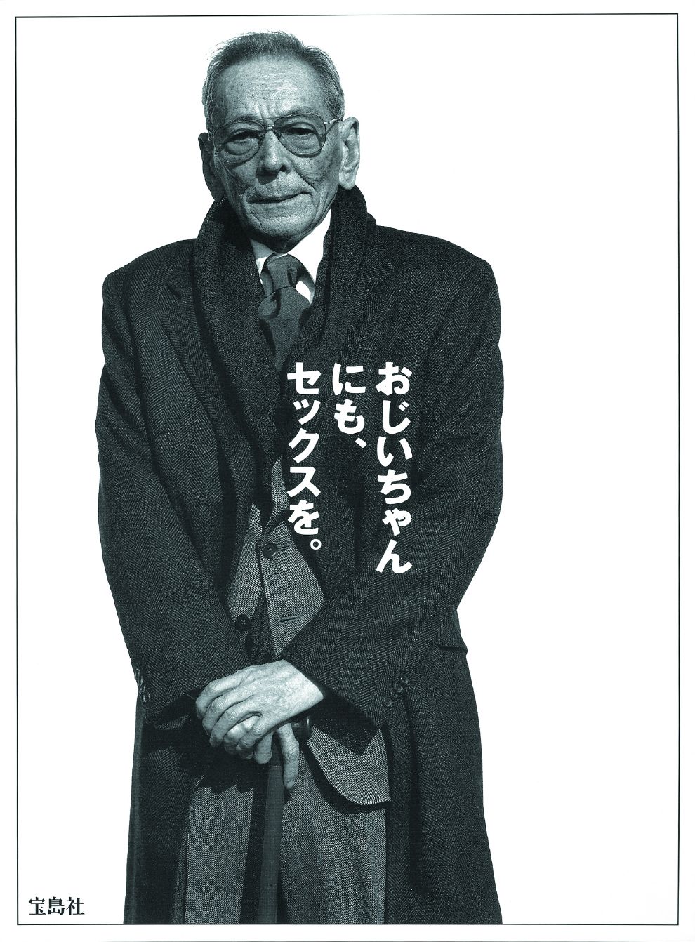 這是寶島社第一次推出的企業廣告:「老頭子也會做愛。」這支廣告推出之後,寶島社收到了不少表示支持或反對的回饋,也是從這支廣告開始,寶島社幾乎每年年初都會推出一款企業廣告。