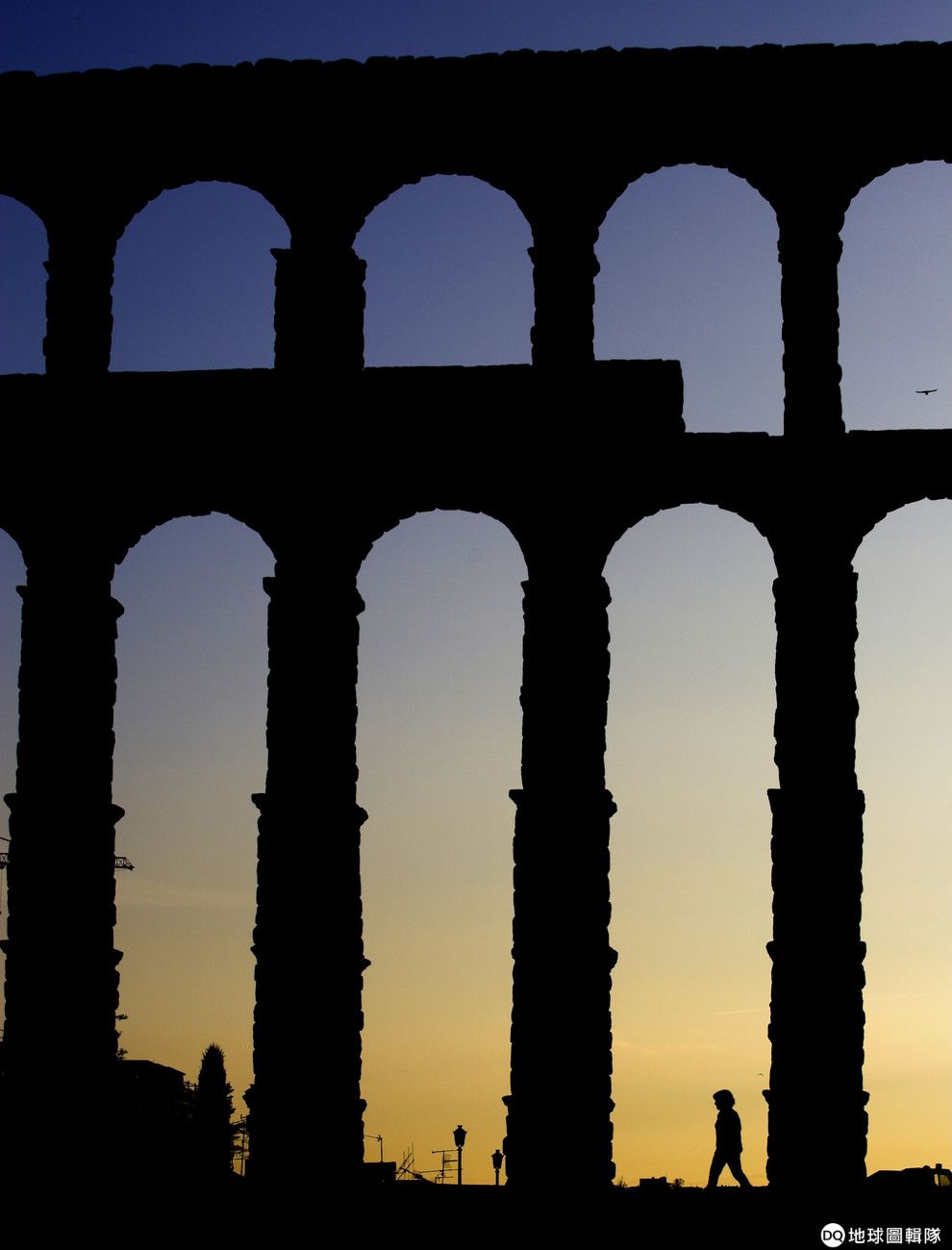 圖為 2006年4月,一名女子在塞哥維亞著名的羅馬水道橋下散步。
