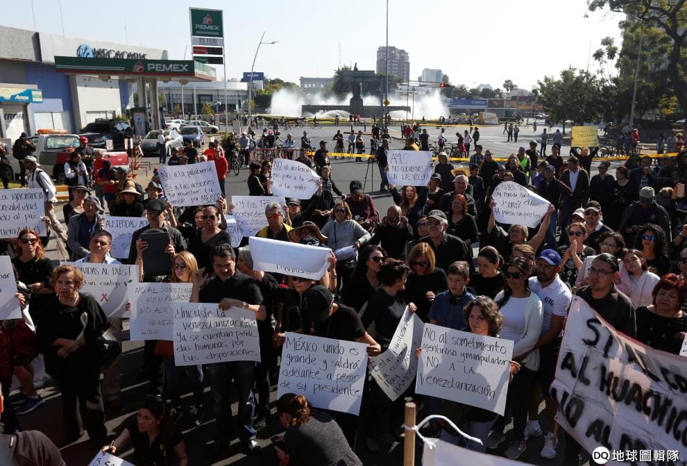 13號在城市瓜達拉哈拉(Guadalajara),民眾齊聚一堂抗議,對國內燃油短缺的狀況表達不滿。