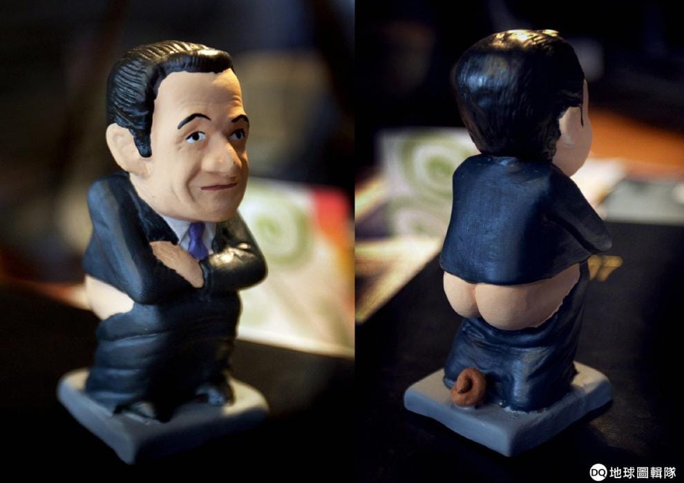 圖為 2007年12月,在法國佩皮尼昂(Perpignan),時任法國總統的沙柯吉(Nicolas Sarkozy)被民眾製成加泰隆尼亞(Catalonia)傳統聖誕節人偶「加卡內」(caganer)。加卡內盛行於西班牙加泰隆尼亞、法國南部和義大利,而加泰隆尼亞語「加卡內」直譯即為「排便者」。