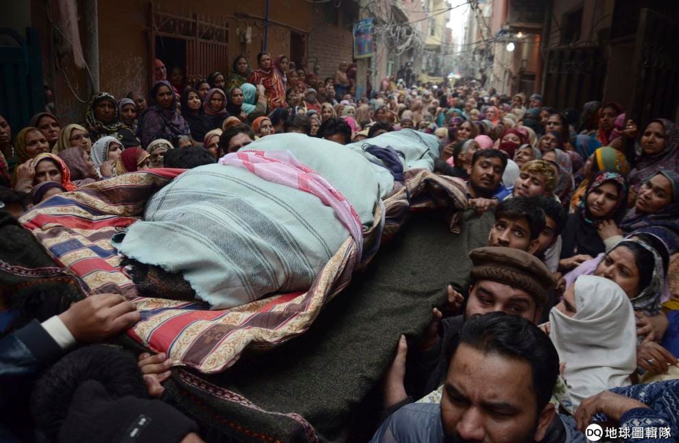 繼續閱讀20號,在巴基斯坦拉合爾,哈利勒一家的親友們圍繞在他們的遺體旁邊默哀。