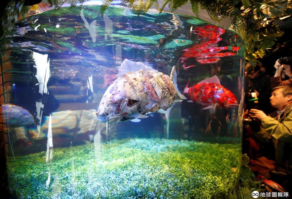 過去為了講求飯店裡都是機器人的賣點,就連魚缸裡的魚也充滿機械感。