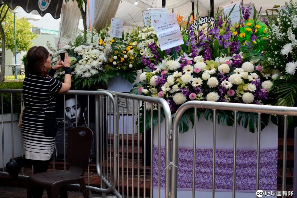在馮偉衷的追思會場上,一名女子拿出一台手機拍照。