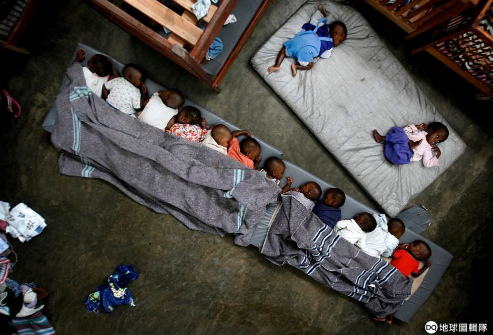圖為 2008年11月,在剛果戈馬的鮑思高Ngangi社區中心,失去家人的孤兒和走丟的剛果孩子們,躺在床墊上休息。
