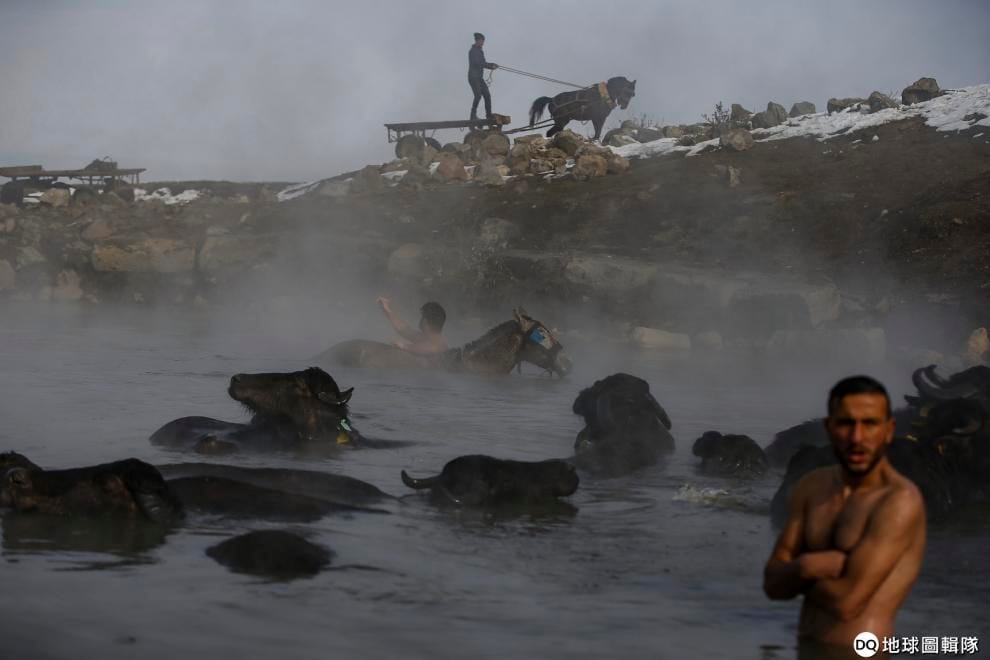 每到冬天,土耳其東部比特利斯省(Bitlis province) Budakli小村落的牧牛人都會帶著上百隻水牛去泡溫泉,他們會一塊走過覆滿白雪的崎嶇道路,一直到海拔 3,050公尺高的休火山──內姆魯特火山(Nemrut volcano)才停下腳步,因為最令大家期待的溫泉到了!
