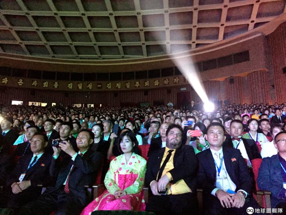 美聯社 / 達志影像2018年9月19日,第 16屆平壤國際電影節在北韓盛大開幕,與會嘉賓一起看著開幕典禮上的大螢幕。