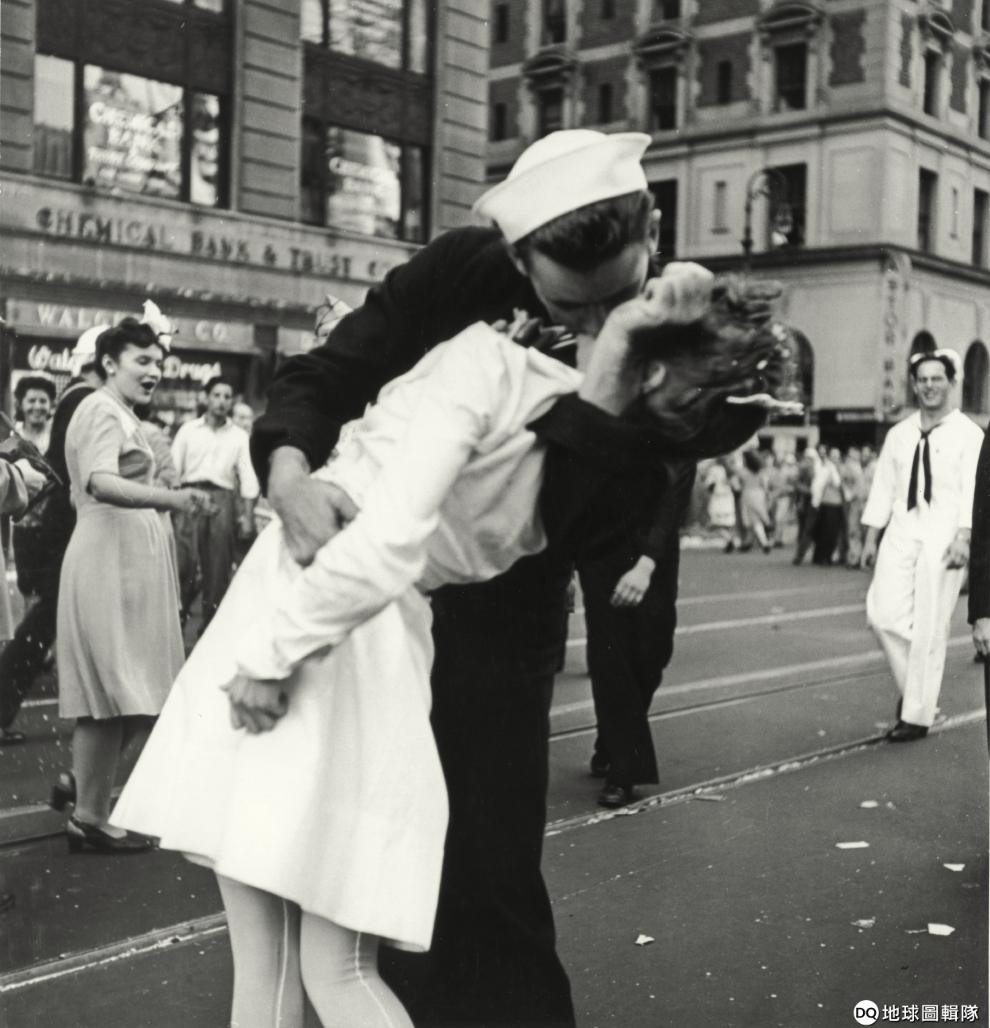 1945年8月14日,日本在二戰投降的消息傳回美國,當時在美國海軍驅逐艦上擔任水手的門多薩(George Mendonsa)帶著女伴一起到紐約時代廣場附近的酒吧慶祝。