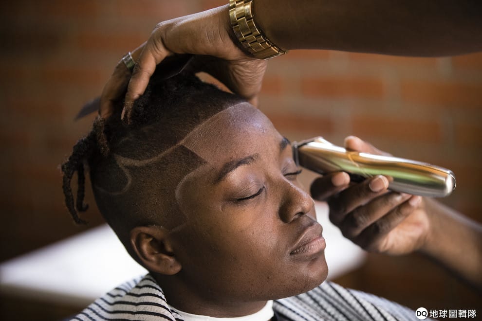 圖為 2017年11月,在美國費城(Philadelphia),理髮師瓊斯(Brennon Jones,不在畫面中)免費替顧客理髮。在瓊斯開店之前,他在街上免費替街友義剪,即使現在瓊斯開了一間理髮廳,他仍延續這項傳統。