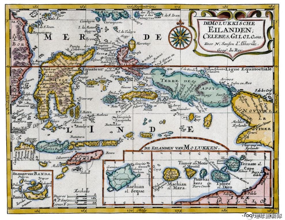 圖為 17世紀探險家繪製的印尼摩鹿加群島地圖,這次發現全球最大切葉蜂的地點就在這裡。