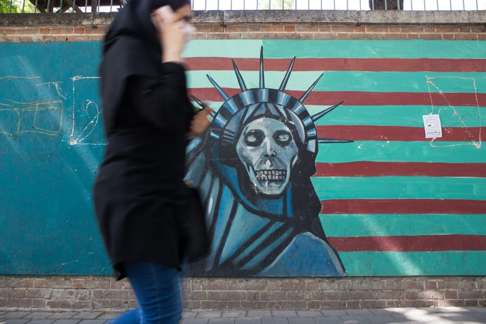 在首都德黑蘭的美國大使館舊址,可以看到黑化的紐約自由女神像和許多反美塗鴉。