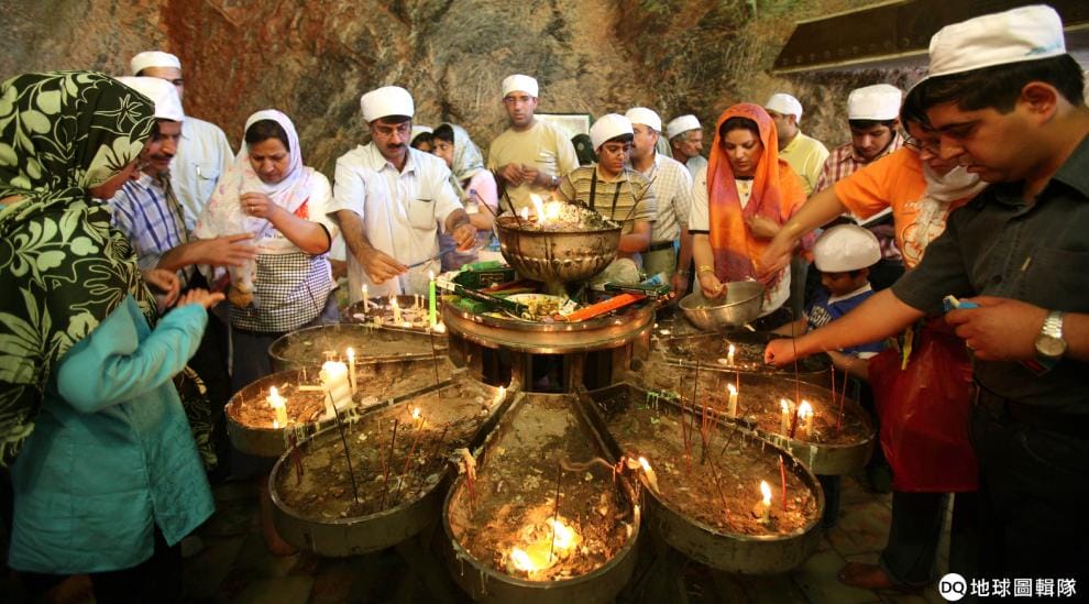 在伊朗中部的Chak Chak村,信徒們在建於高聳懸崖下的祆教神廟中禱告。祆教是古代波斯帝國的國教,也是伊斯蘭教誕生之前,在中東和西亞最具影響力的宗教。
