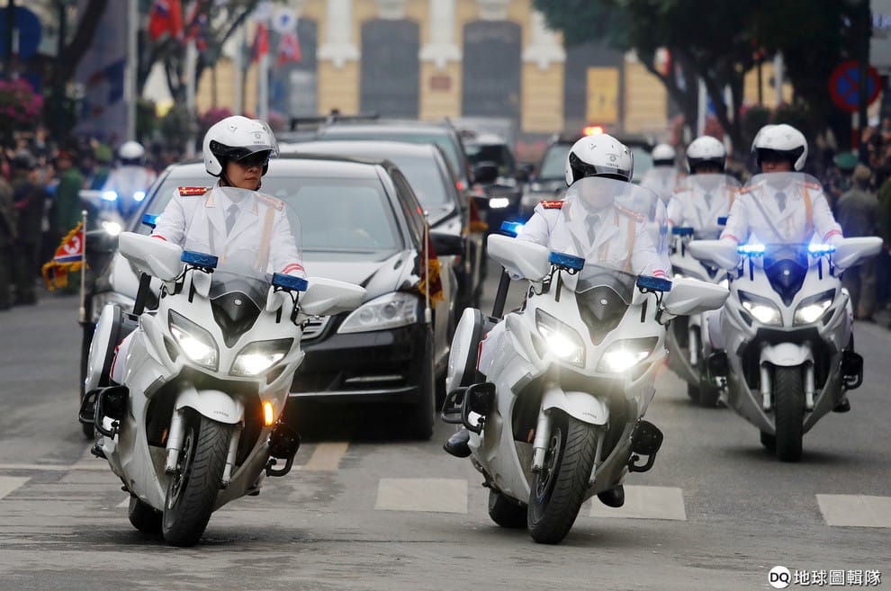 路透社 / 達志影像金正恩的豪華轎車當然少不了機車大隊負責開路,當時他們一行人行經河內歌劇院。