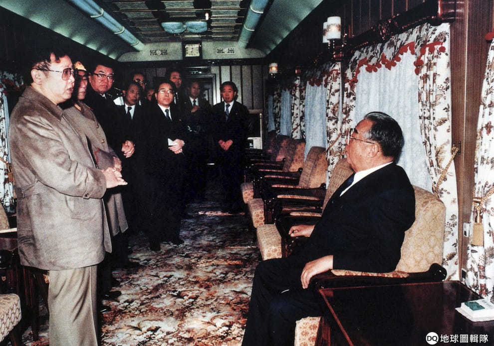 圖為 1989年,金日成(右)和金正日(左)前往中國的路上,在火車上談話。北韓領導人專用火車的一大特點,就是他們的座椅是沙發。
