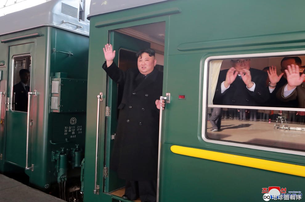 圖為 23號在北韓平壤,北韓領導人金正恩啟程前往越南河內前,在火車上和民眾揮手致意。