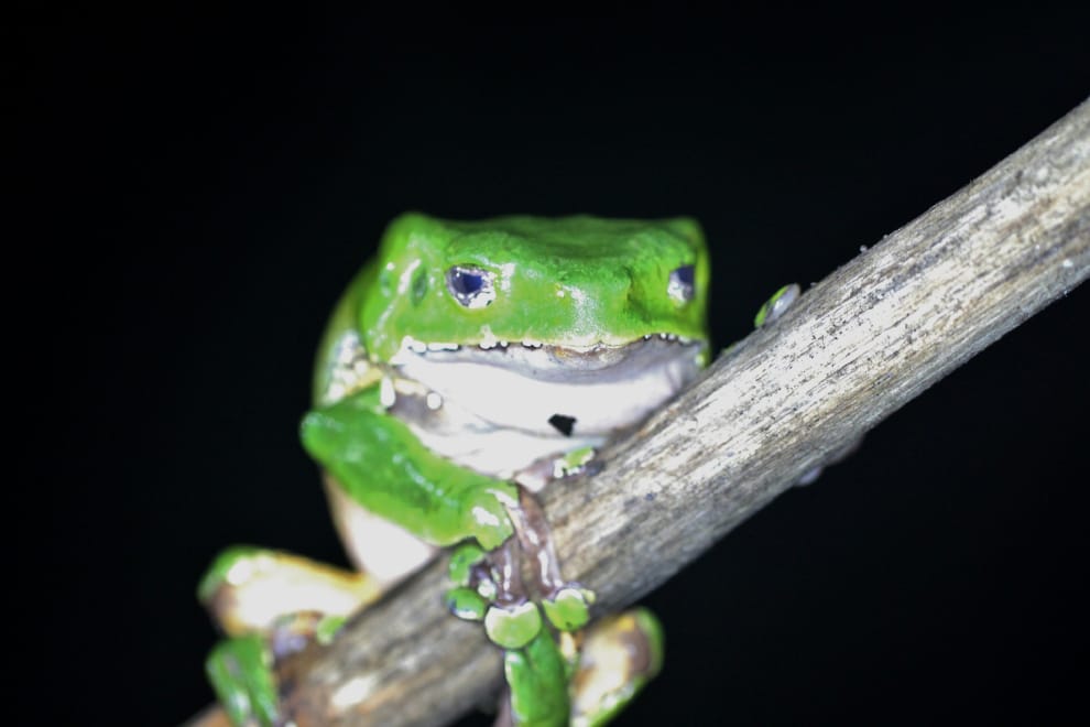 要收集到雙色猴樹蛙身上的黏液,得想辦法讓牠們受到威脅才行。
