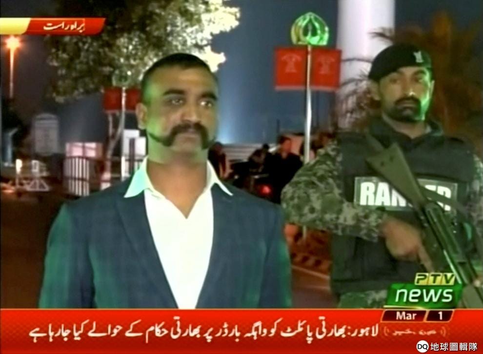 本月 1號在印度與巴基斯坦的邊界城市瓦加(Wagah),飛官瓦塔曼在軍人的護送下準備返回印度。