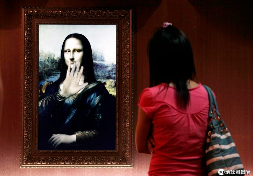 2009年8月在中國北京的展覽上,一名參展者正在觀看3D全像投影版本的蒙娜麗莎。