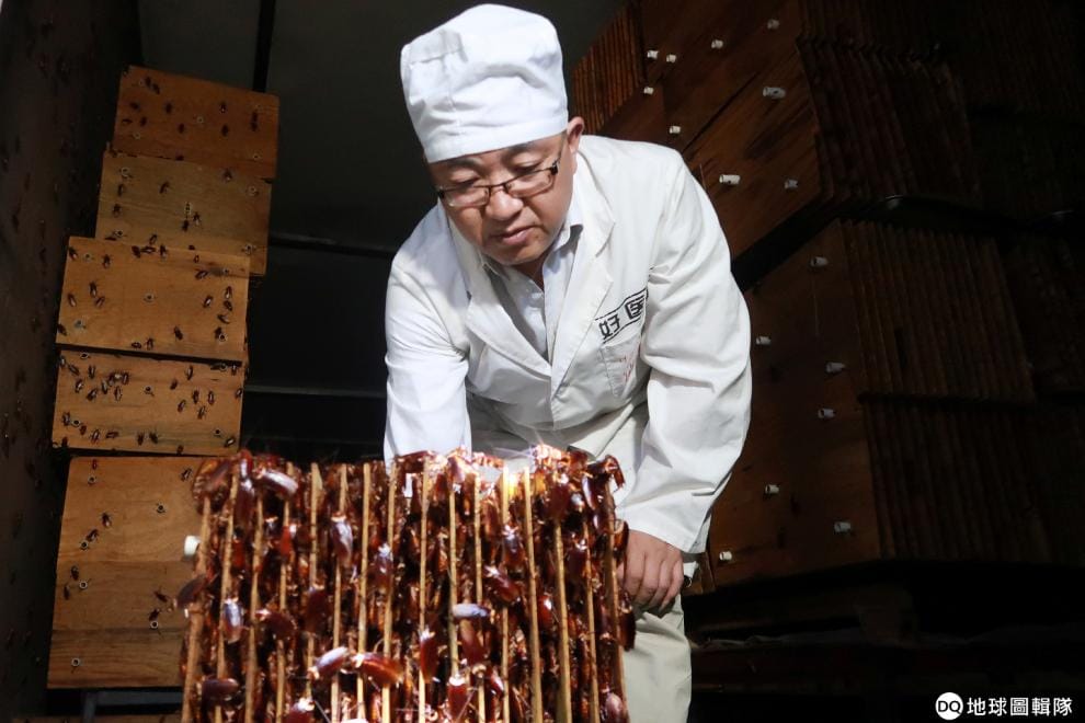 在四川省的另一個角落,這家好醫生藥業集團已經飼養了 60億隻的蟑螂,每當蟑螂們六個月的生命周期將盡後,牠們就會被脫水、風乾,再送到巨大的營養萃取槽裡處理。