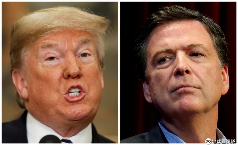 圖左為美國總統川普,圖右為遭到川普開除的前FBI局長科米。和科米親近的人士表示,川普開除科米有兩大原因,第一是科米從來沒有表示對川普效忠,再來,FBI在調查 2016美國大選的「通俄案」。