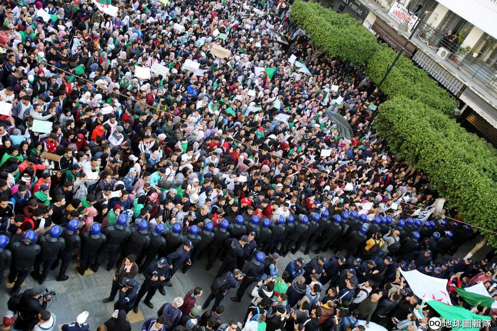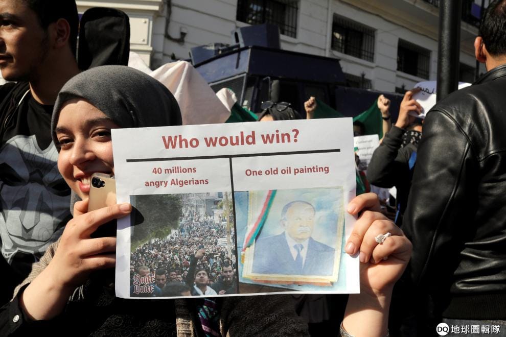 路透社 / 達志影像在阿爾及利亞首都阿爾及爾(Algiers),民眾上街抗議從 1999年開始執政的總統包特夫里卡再次宣布參選總統。