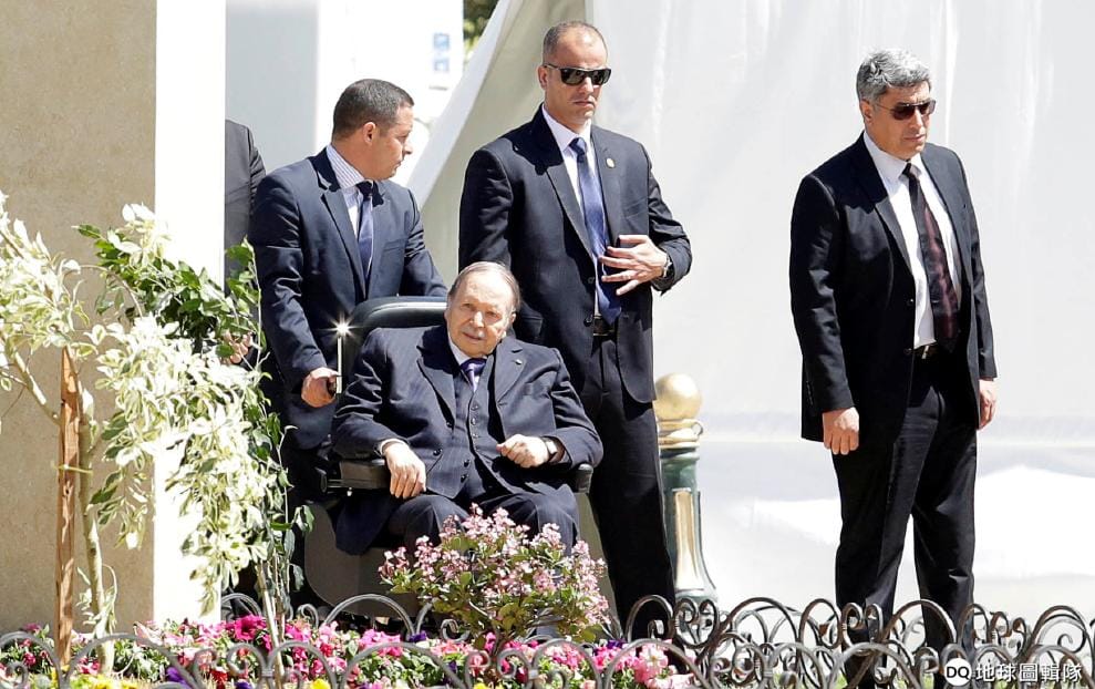 2018年4月9日,阿爾及利亞總統包特夫里卡坐在輪椅上現身首都阿爾及爾(Algiers)。