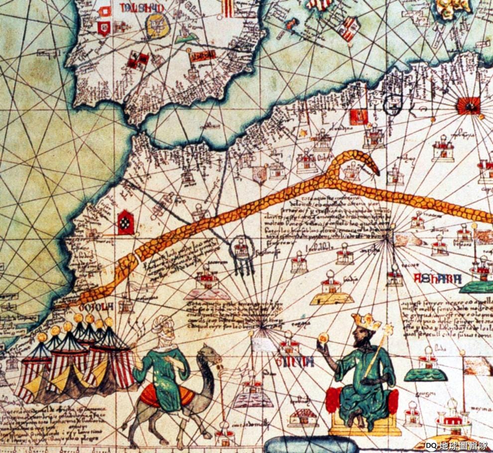 除了奢華的麥加朝聖之旅讓穆薩國王聲名遠播,一幅 1375年在地中海馬約卡島(Majorca)繪製的地圖也讓外界看到穆薩國王的有錢有勢。在這幅名為Catalan Atlas的古代地圖中,繪師將穆薩國王畫了出來,他就坐在位於廷巴克圖的黃金寶座上,手裡還拿著黃金。